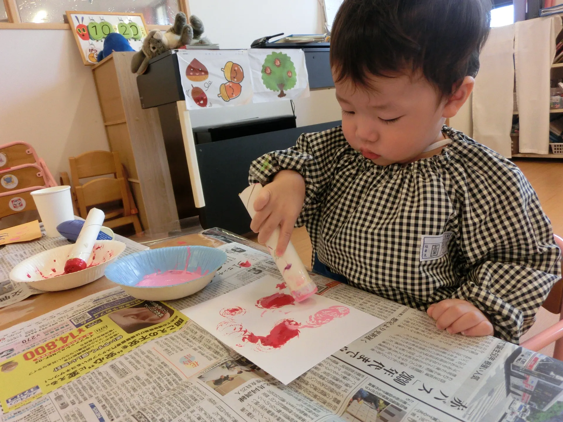 絵の具を使った制作の様子です。真剣な表情で取り組んでいますね!